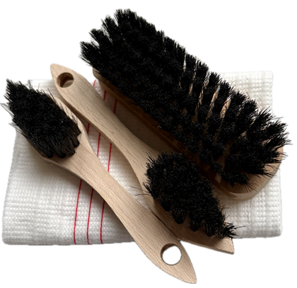 Compact mini shoe care set with two applicator brushes for light and dark shoe polish and one polishing brush for shining. All brushes are made of wood and fitted with a high-quality horsehair blend, ensuring gentle care and an excellent shine. Ideal for everyday use or travel.